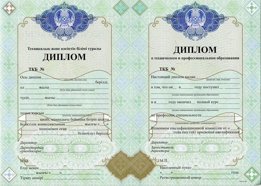 Образцы дипломов техникума / ПТУ Казахстана: